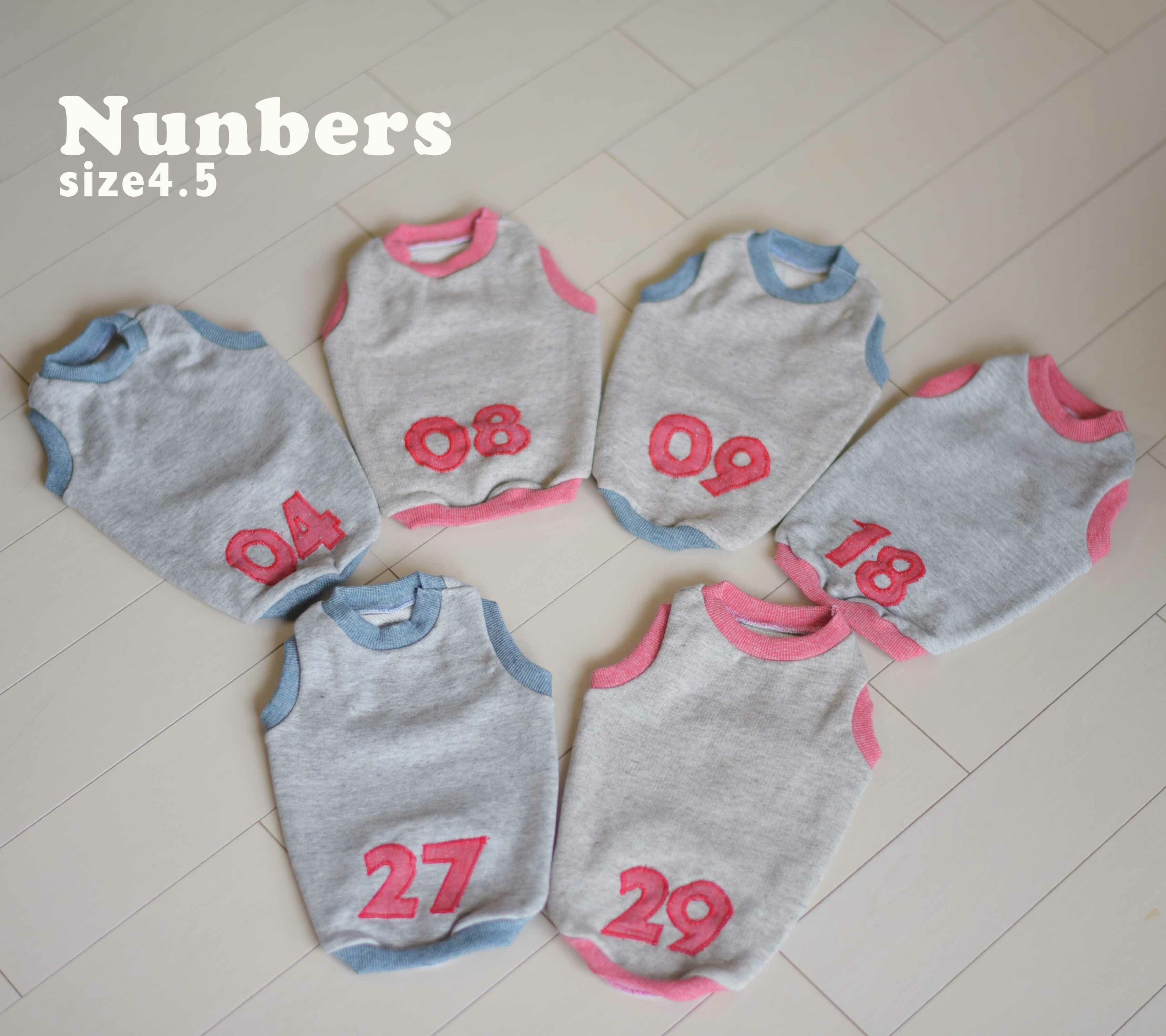 4、5〜5キロ前後の子に着ていただける「Numbers」Tシャツです。