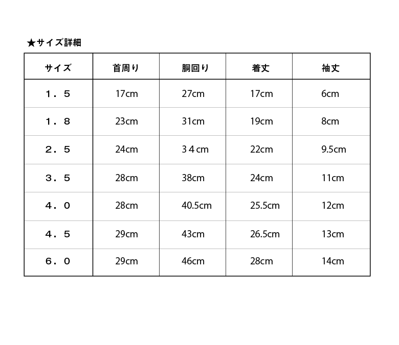 *なるべく、体重の近いサイズをお選びください。